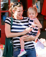 Jennifer Garner and her cutie pie daughter, Seraphina, show their stripes in matching tops as they go to the farmers market on Sunday (June 26) in Brentwood, Calif.