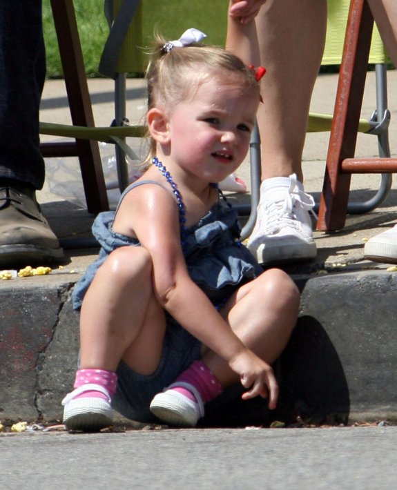 The 39-year-old actress, who was decked out in red, white, and blue, bought a bubble gun for the girls and shared popcorn with Seraphina, who will be 2 and a half this week.