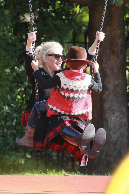 No Doubt front woman Gwen Stefani , 42, was spotted enjoying a day at the park with her two handsome dudes Kingston, 5, and Zuma, 3 on Saturday (October 22) in London, England.